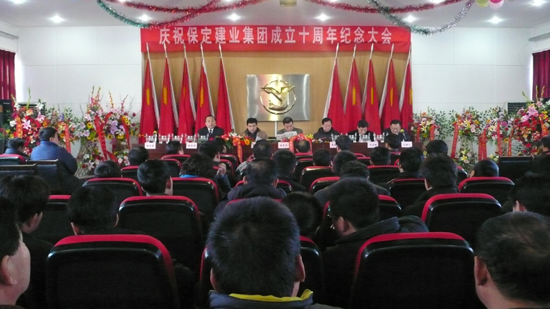 2008年12月18日上午8時28分,慶祝保定建業(yè)集團成立十周年紀念大會在集團公司六樓大會議室隆重召開,參加大會的有市建設局有關領導、市總工會有關領導、兄弟單位領導、集團領導及集團公司有關人員共計200余人,共有60多家單位給本次大會的召開發(fā)來了賀信,大會在隆重的國歌聲中開幕。