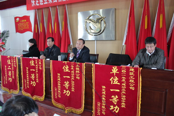 在隨后舉行的二零一一年度集團表彰大會上,由黨委副書記閆雙彥宣讀了“二零一一年度建功立業(yè)表彰決定”,并由集團公司領導對獲獎單位頒發(fā)了錦旗和獎狀。
